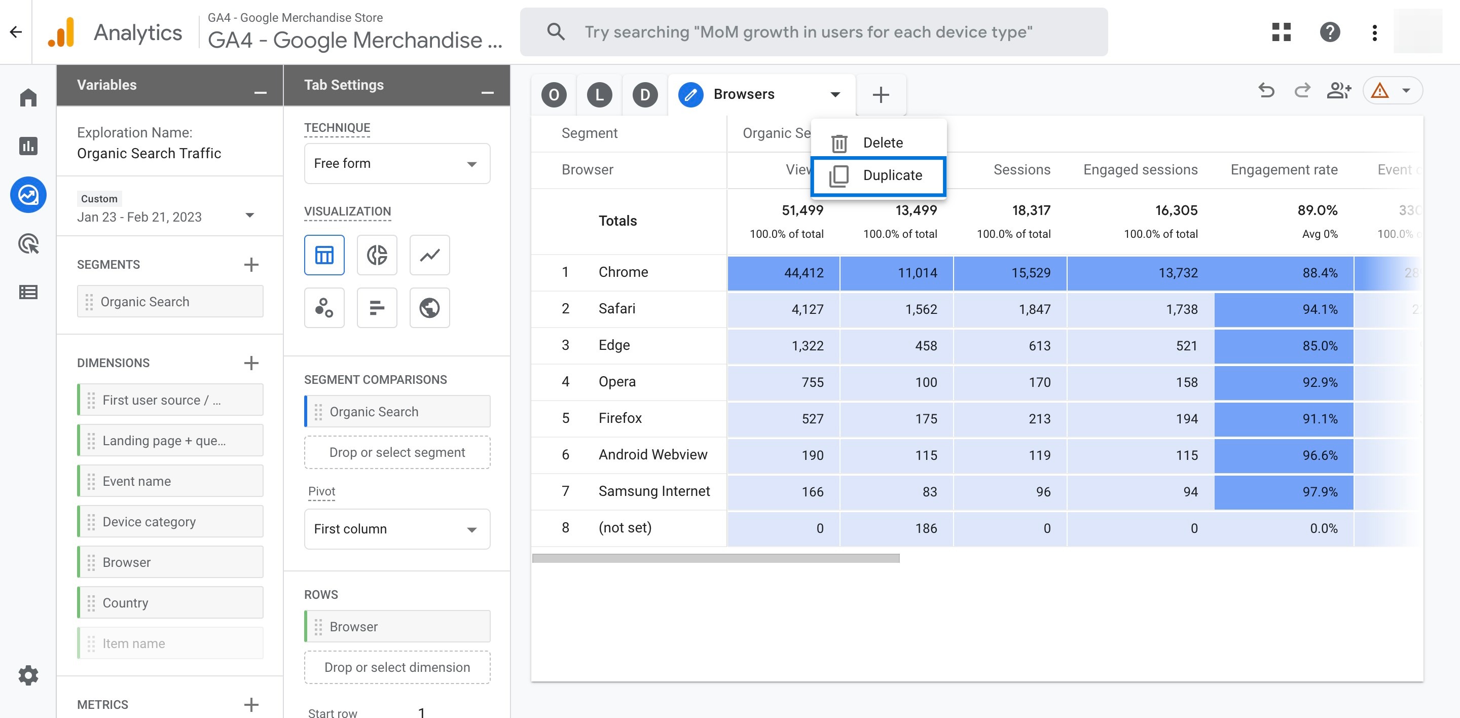 - In GA4, go to Reports → Acquisition → Traffic acquisition. Use the dimension Session default channel group to filter for Organic Search traffic. You'll see how many sessions arrive via SEO.