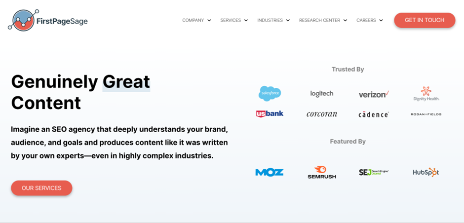 | First Page Sage | Full-stack GEO: strategy, content, technical, PR, reviews | B2B brands needing authority-based AI citations | Entity-first publishing designed for LLM trust Long-term authority building with expertise signals |