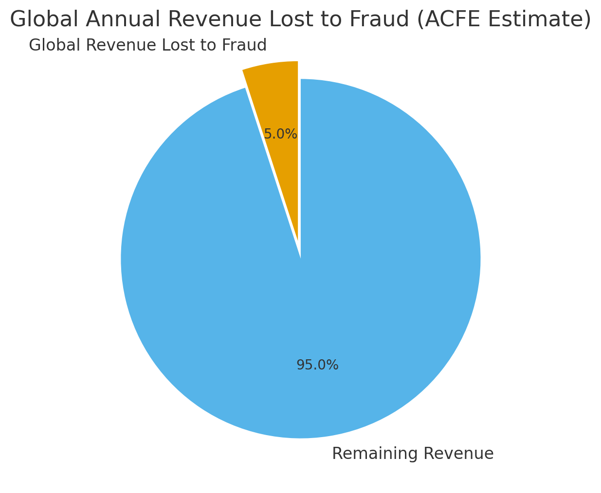 According to theAssociation of Certified Fraud Examiners (ACFE), organisations lose an estimated 5% of annual revenue to fraud, which translates into over $4.7 trillion globally each year.