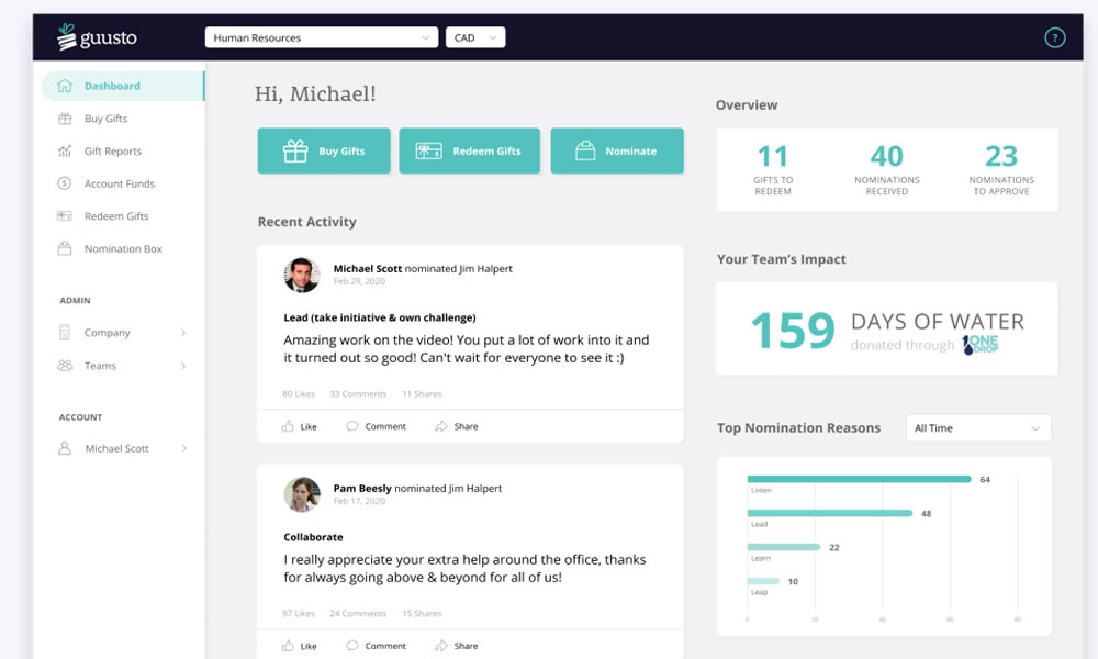 A successful platform for recognition will encourage participation and interest. Therefore, workers will feel more of an obligation to make use of it. Likes, comments, pictures, and GIFs all contribute to a sense of community and celebration as users scroll through their social newsfeeds.