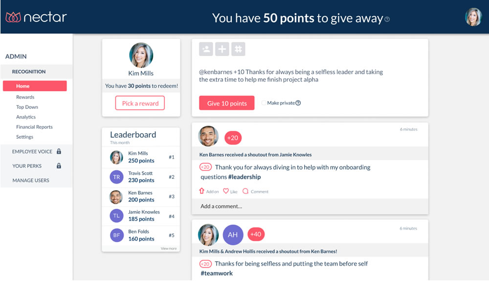 You can also use an intuitive, social network-style user interface rather than a stuffy, businesslike one. Money is being given to workers so that they can reward one another rather than receiving all of their rewards from management.