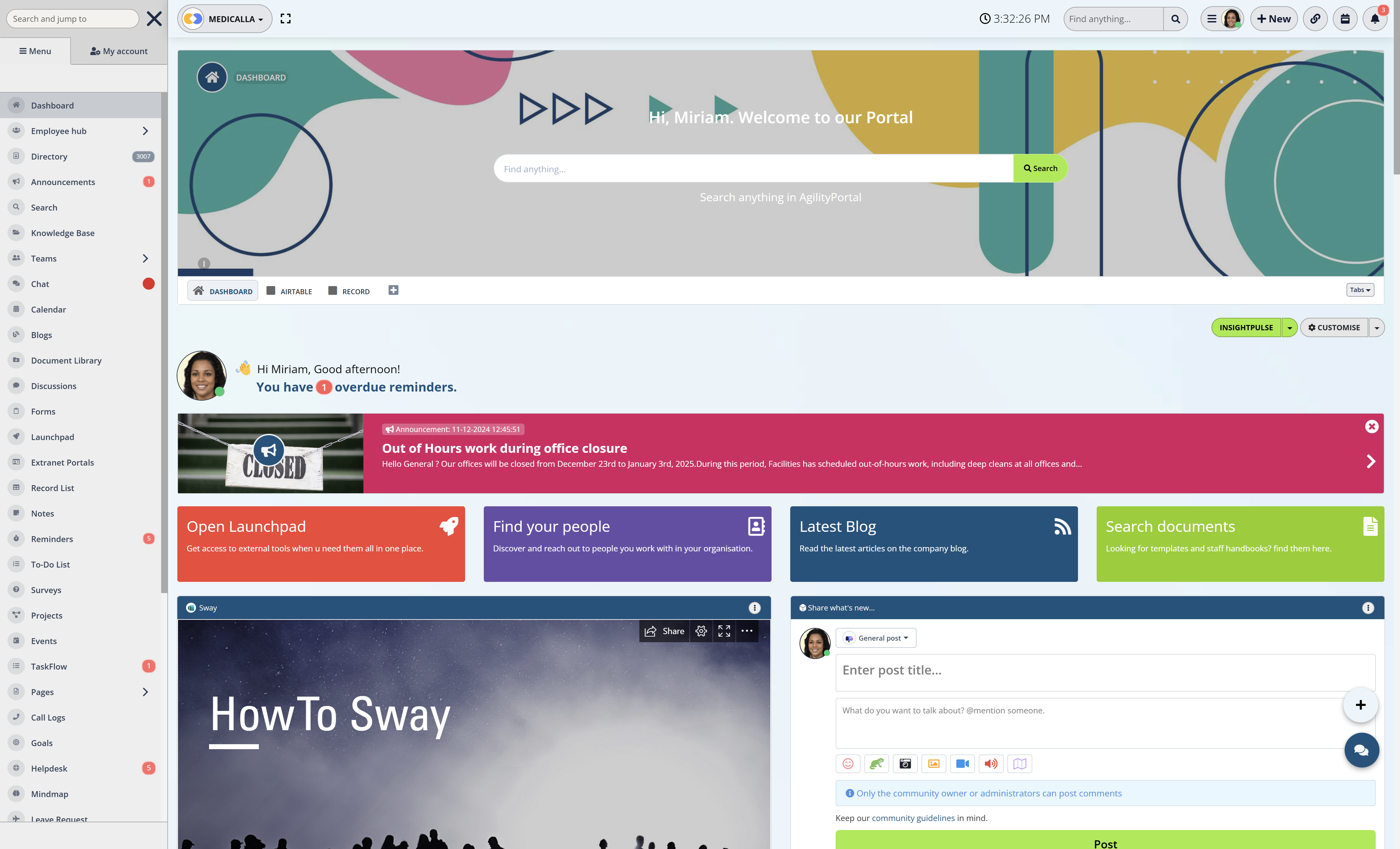 - Deliver real-time updates and important announcements to employees directly in their workflow.