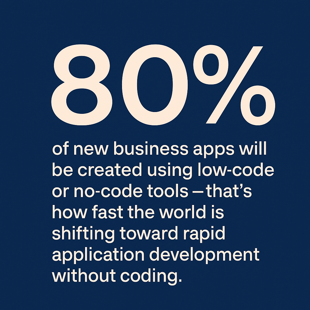 According to Gartner, by 2026 over 80% of new business apps will be created using low-code or no-code tools — that's how fast the world is shifting toward rapid application development without coding.