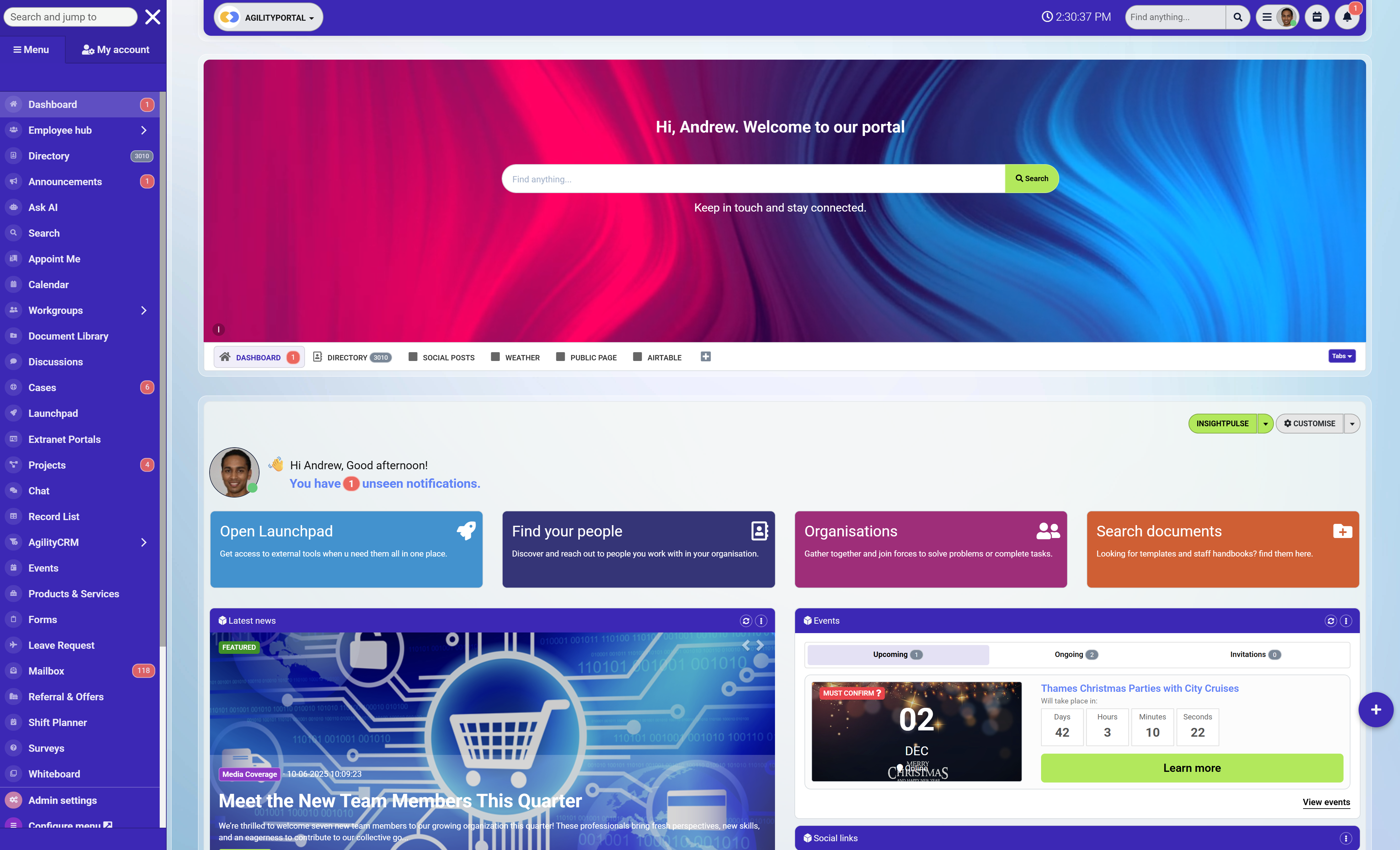 Instead of juggling multiple apps and endless email threads, everything you need lives in one connected environment — powered by the right digital workplace tools like AgilityPortal.