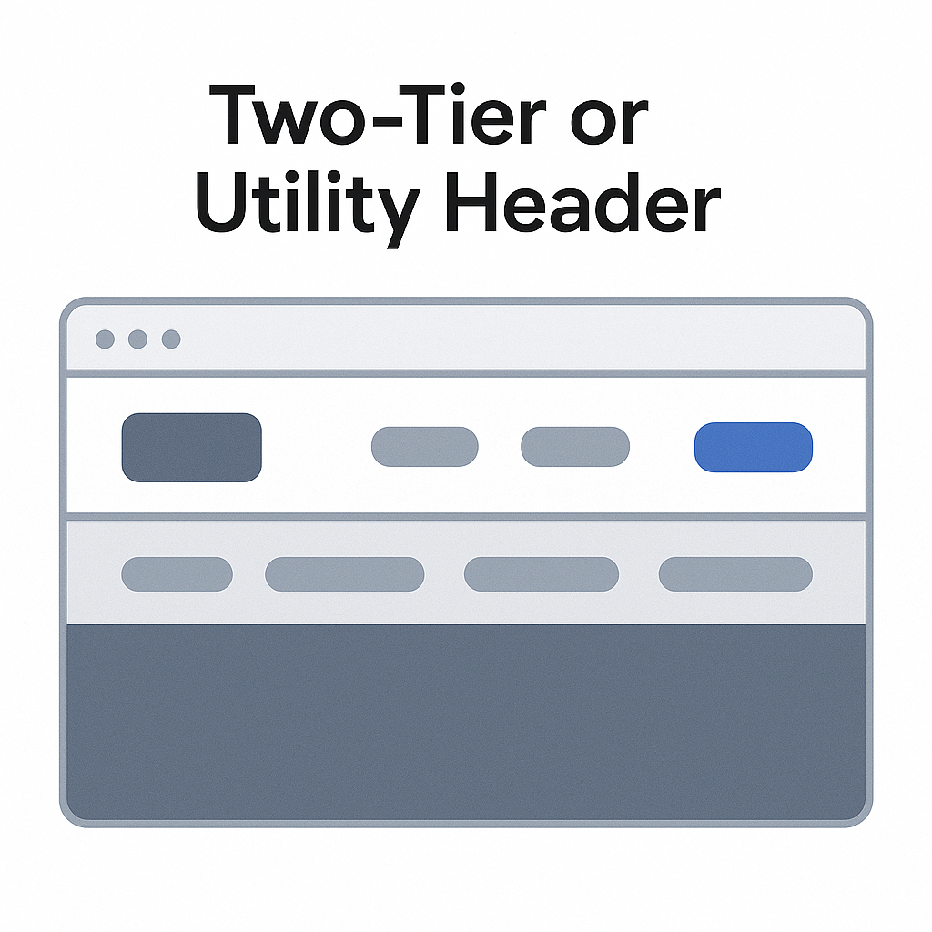 A two-tier header adds an extra strip above your main navigation — often used for contact info, login links, or announcements.