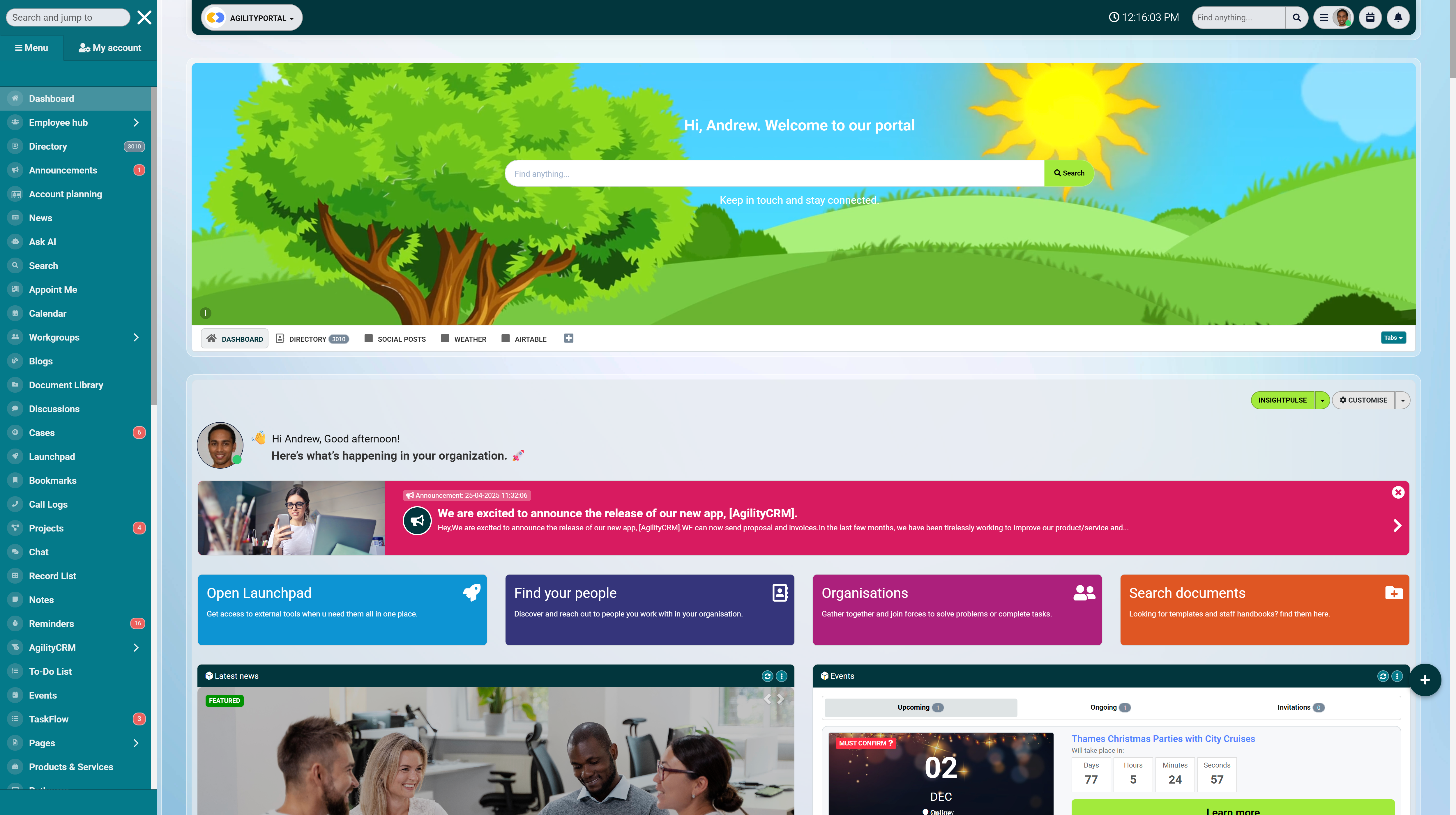 AgilityPortal adds pulse surveys, badges, and social feeds to keep employees motivated and connected.