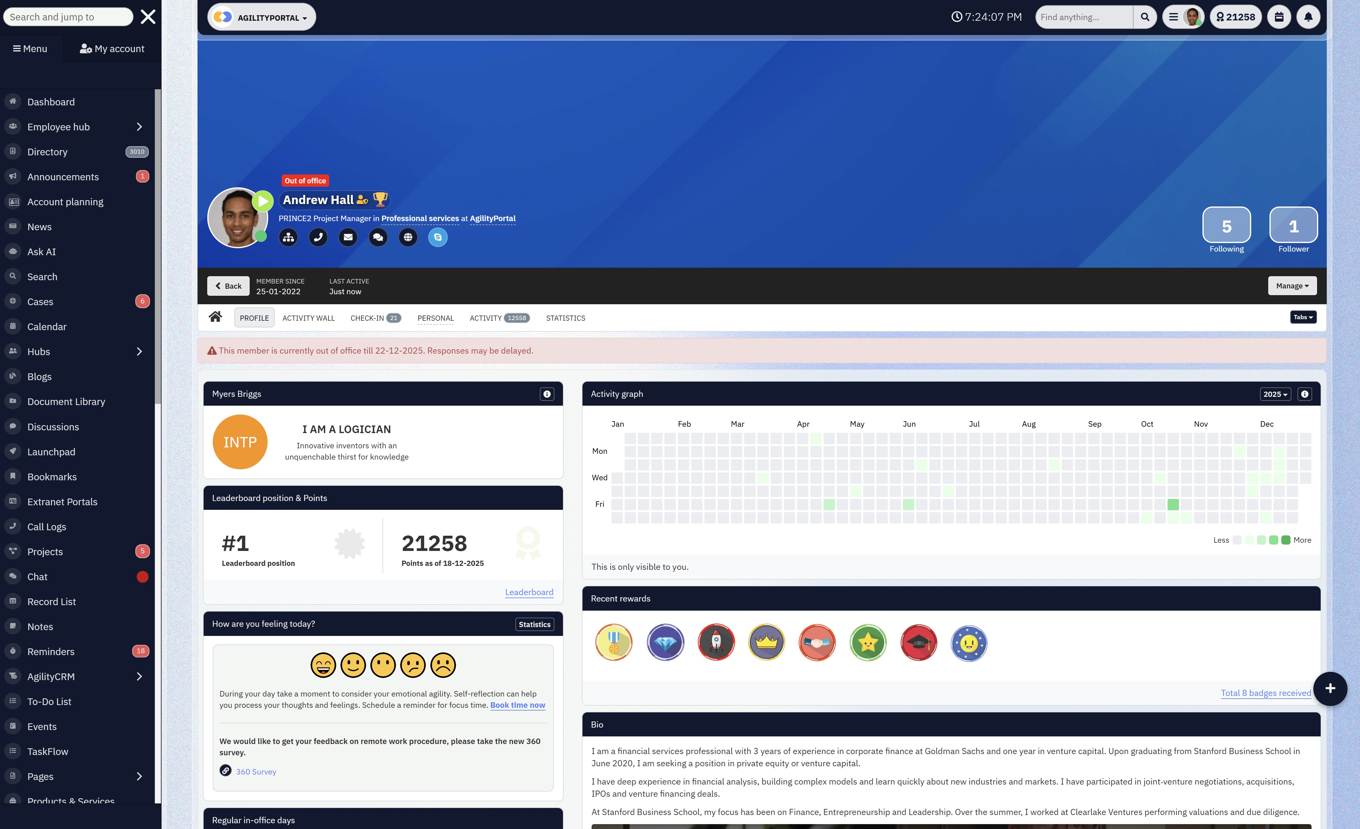 This is where platforms like AgilityPortal play a practical role. Rather than treating wellbeing as a separate initiative, AgilityPortal embeds it into everyday work.