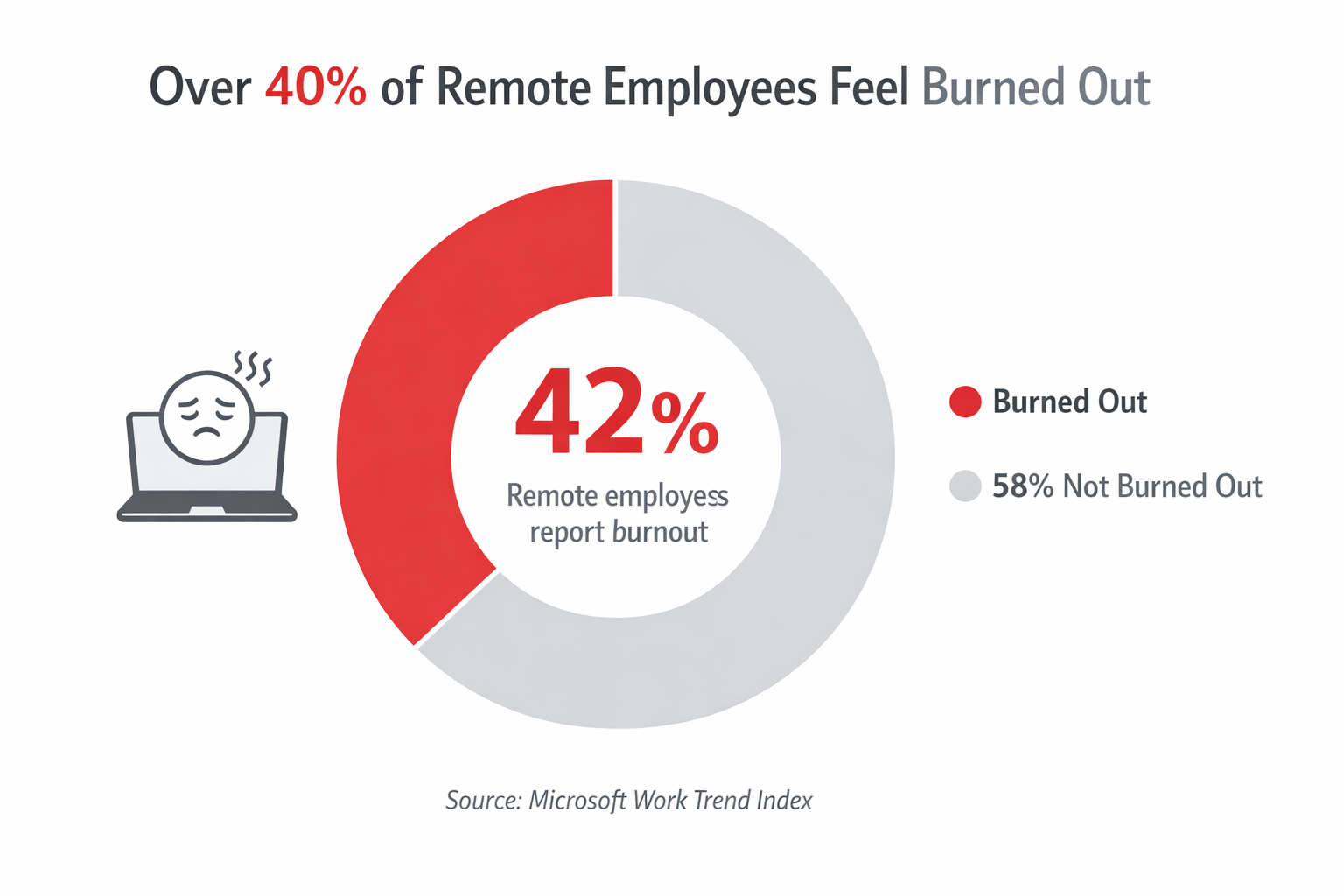 Meetings crept into early mornings and late evenings. Without a physical office to leave, many employees never truly switch off. When there's no clear stop time, stress becomes constant instead of manageable.