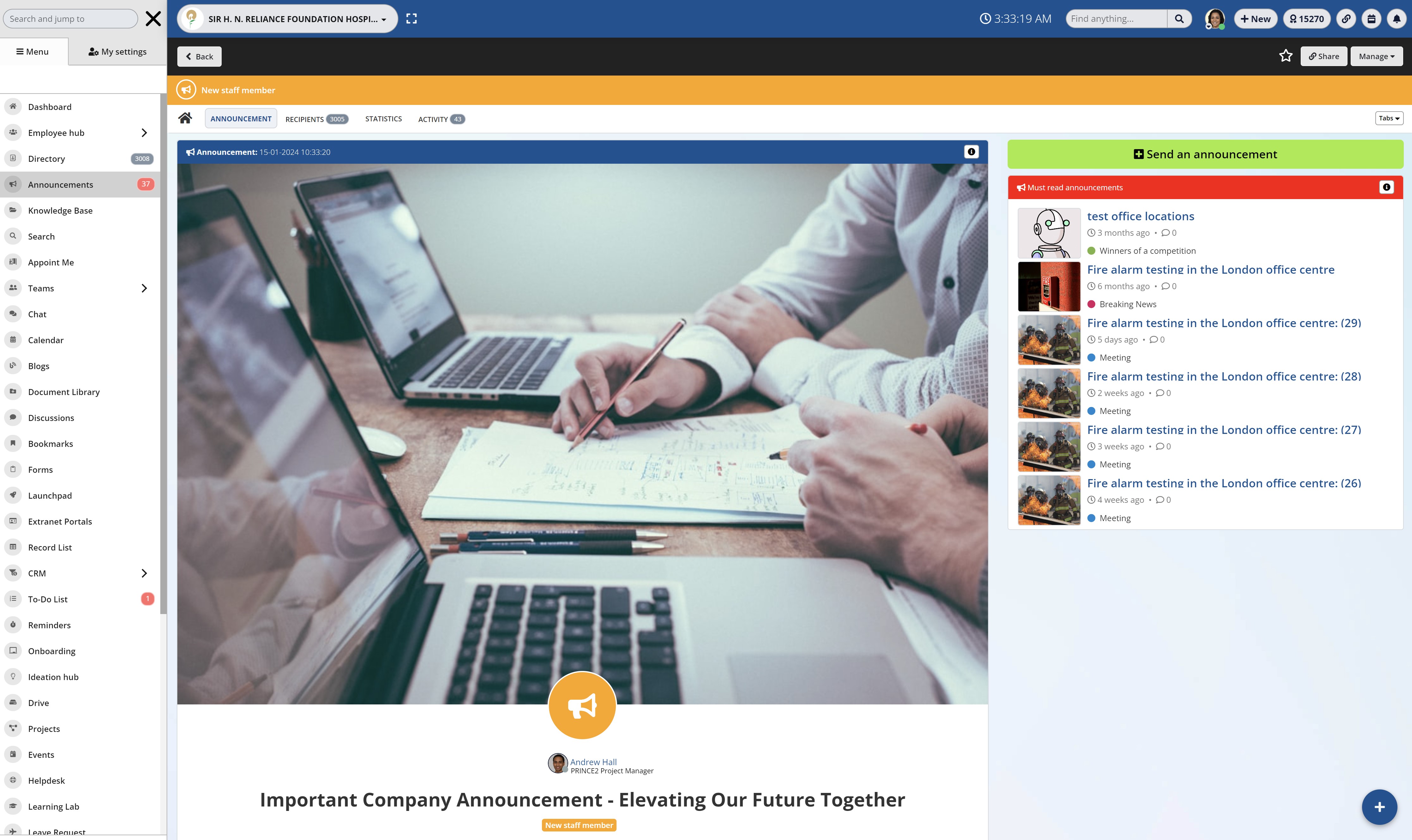- Providing a centralized platform for announcements, ensuring that all employees receive the information simultaneously.