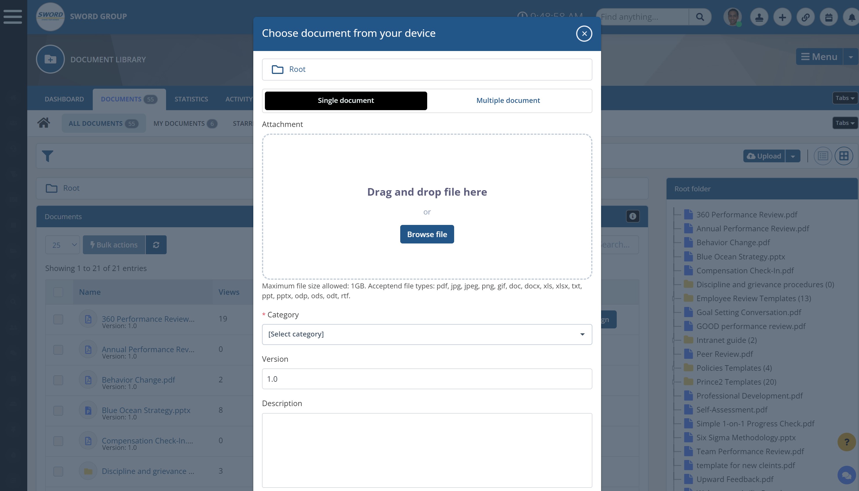 You can sync files, upload numerous files at once, or just drag & drop them with the help of an intranet document management system.