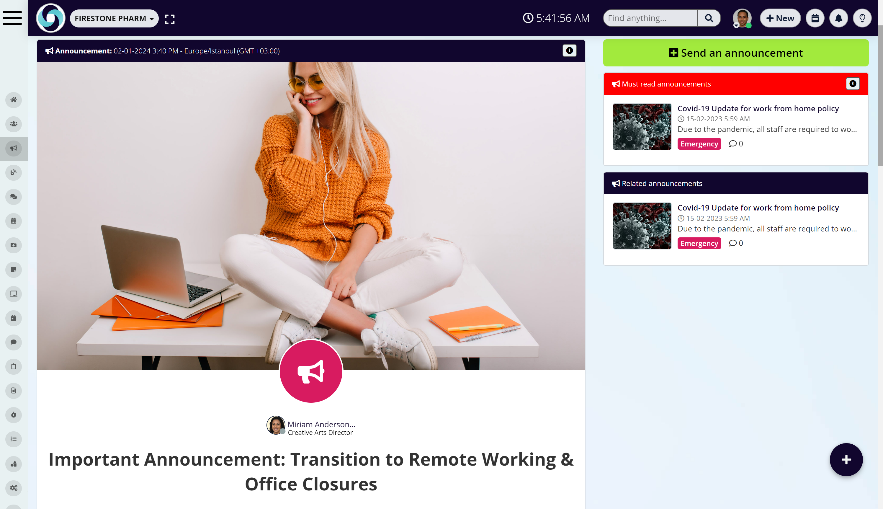 Here are six effective intranet announcement examples with different use cases: