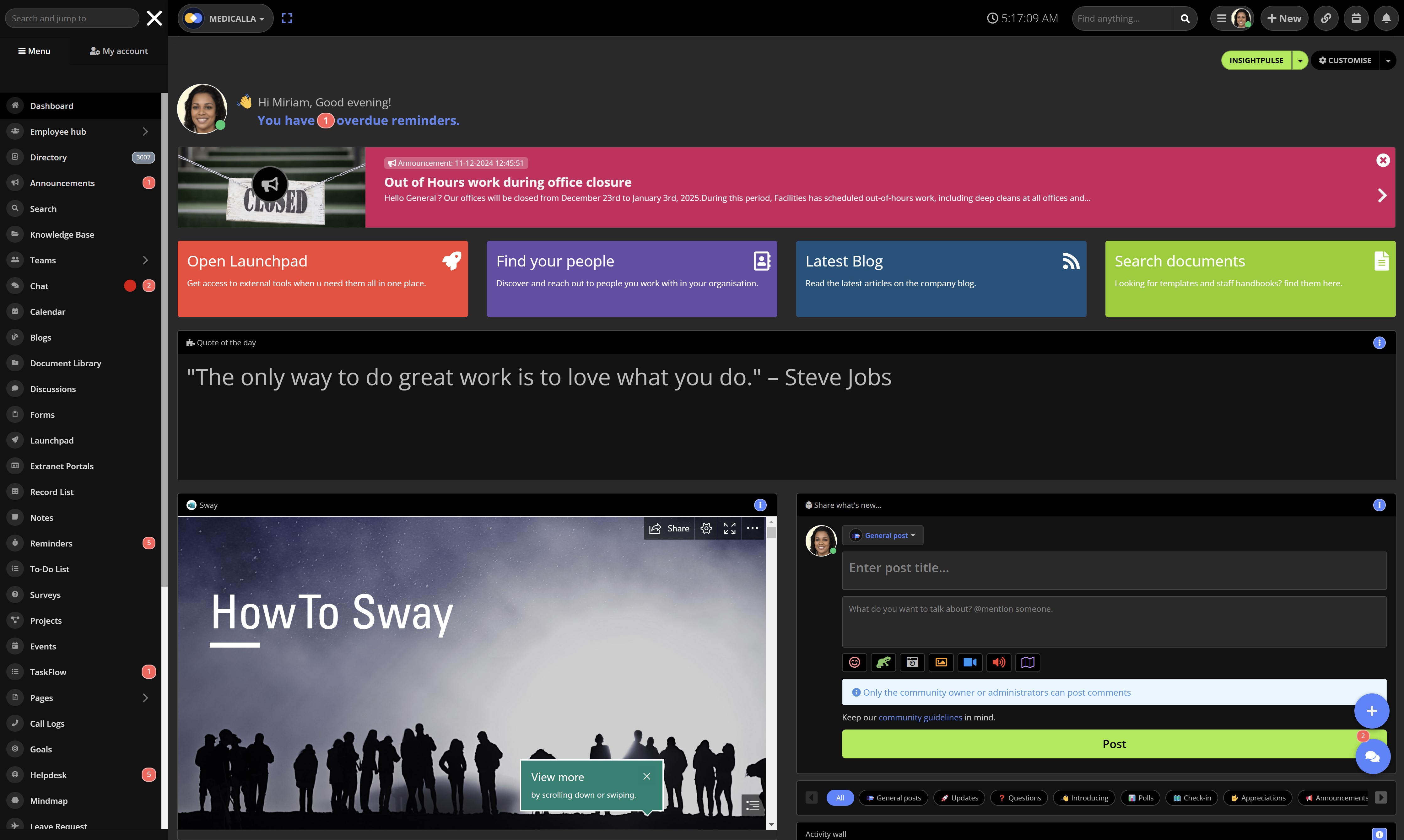 - Employee Engagement: Use AgilityPortal's engagement tools to spark conversations around motivational messages, encouraging teamwork and collaboration.