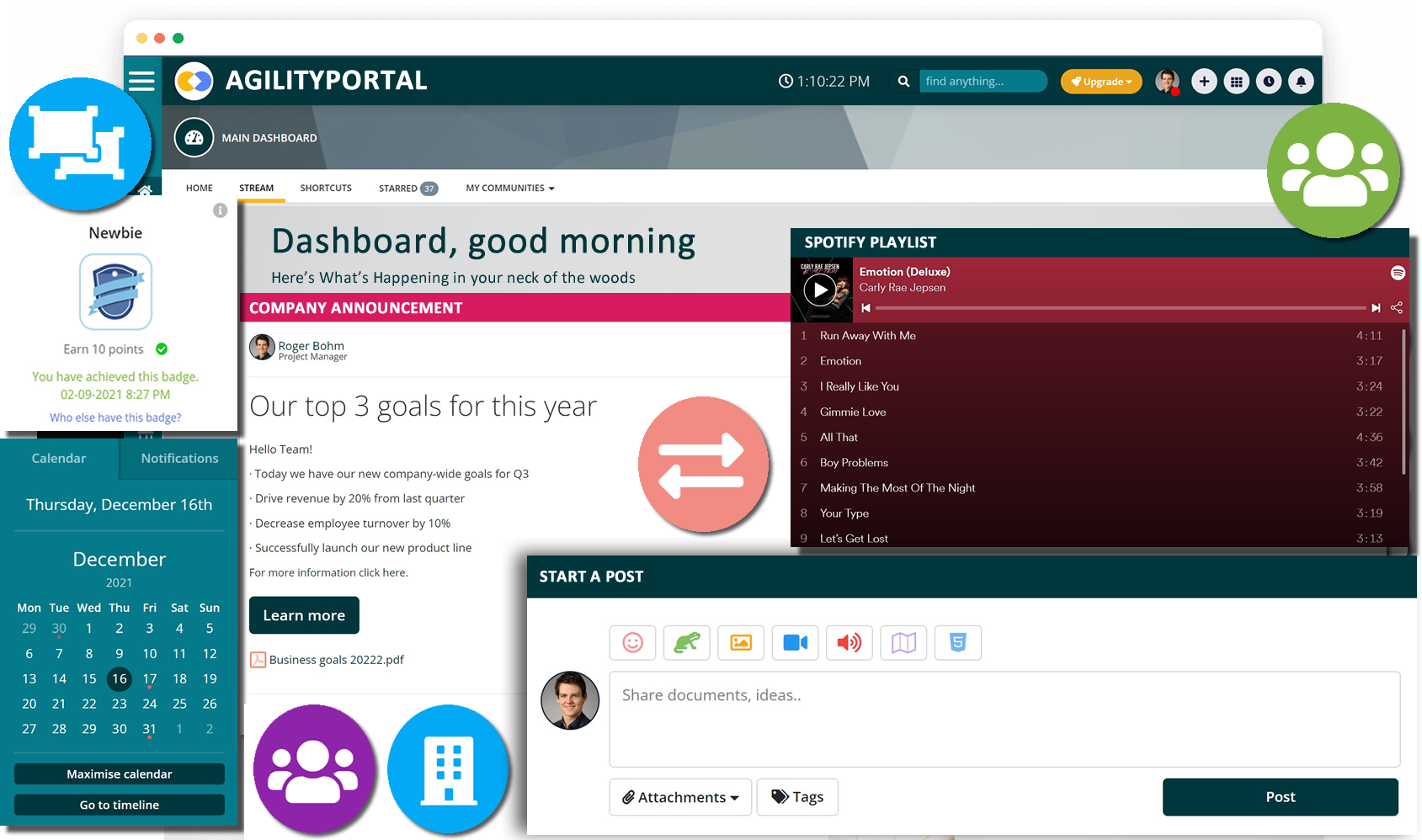 Intranets, like AgilityPortal, the best intranet software for small businesses incorporates modern-day technology, and they are highly distinct and active. Employees can stay connected, communicate, interact, access internal resources, share information, manage project assignments, and much more on an engaging platform. In a nutshell, a modern intranet remains at the heart of your workplace.