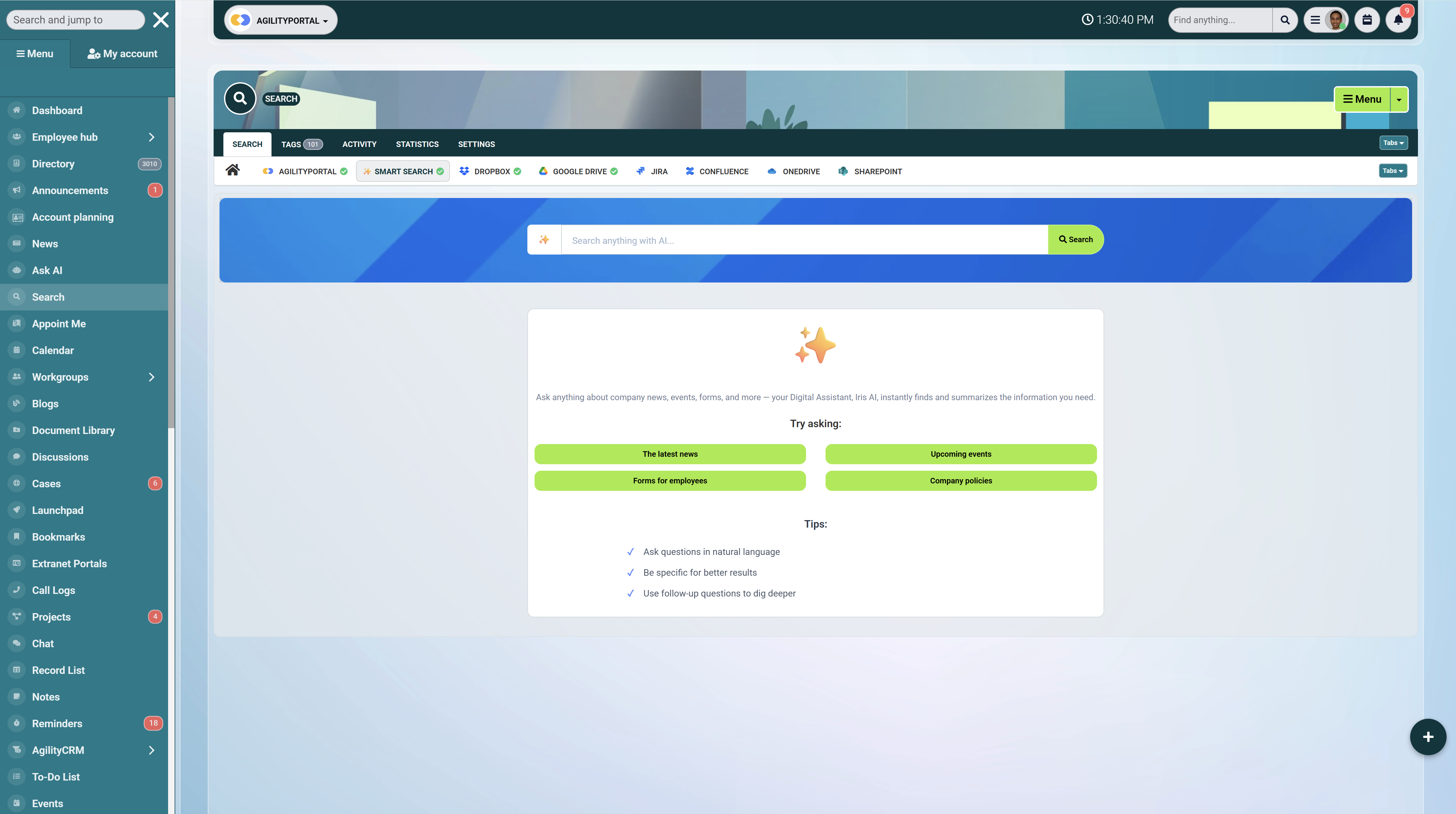 - AI-powered search gives employees fast, accurate answers inside a controlled environment.