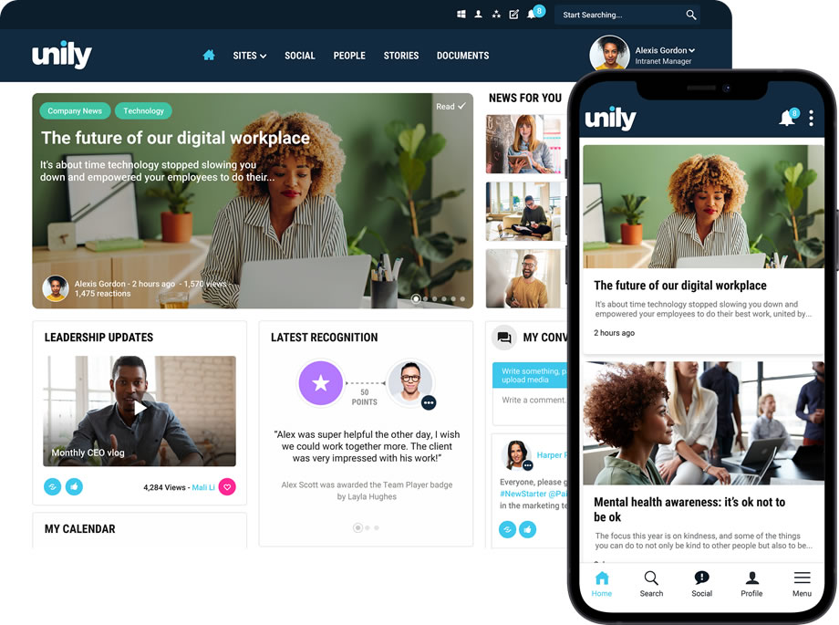 Unily's Slack integration makes it easy to design robust digital experiences for distant teams.