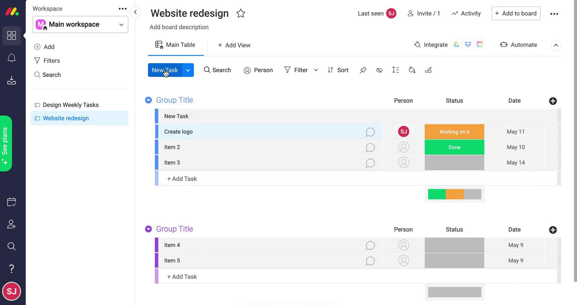 - Boards: Monday.com is organized into boards, which can be used to manage different projects, teams, or workflows.