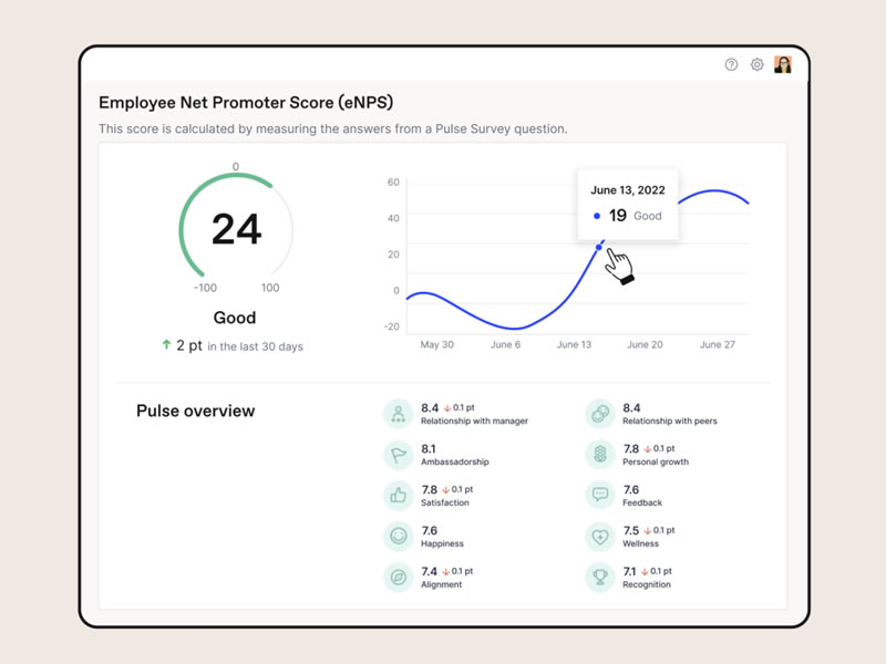 Additionally providing a special tool for staff members to acknowledge and value one another's efforts is TinyPulse's "Cheers for Peers." This function promotes a good workplace and team member cooperation. TinyPulse is a great choice for companies trying to swiftly collect comments and raise morale.