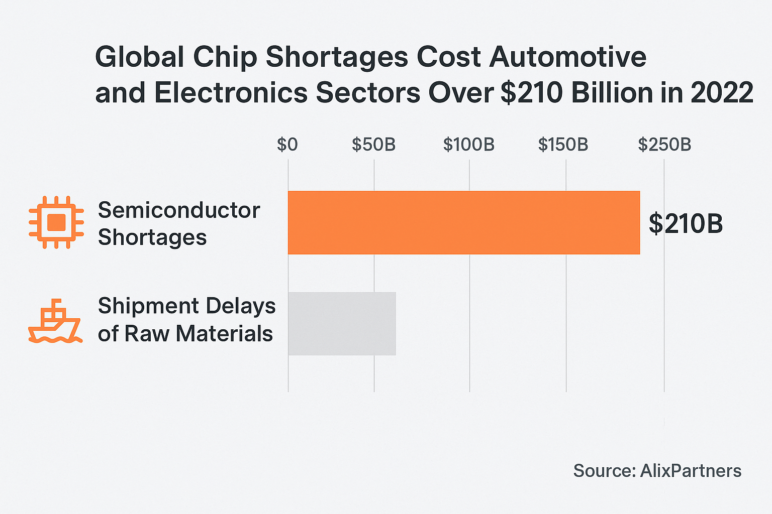 What was once seen as a smooth, global machine suddenly hit major roadblocks — from semiconductor shortages to delayed shipments of essential raw materials. In fact, global chip shortages alone cost the automotive and electronics sectors over $210 billion in 2022, according to AlixPartners.