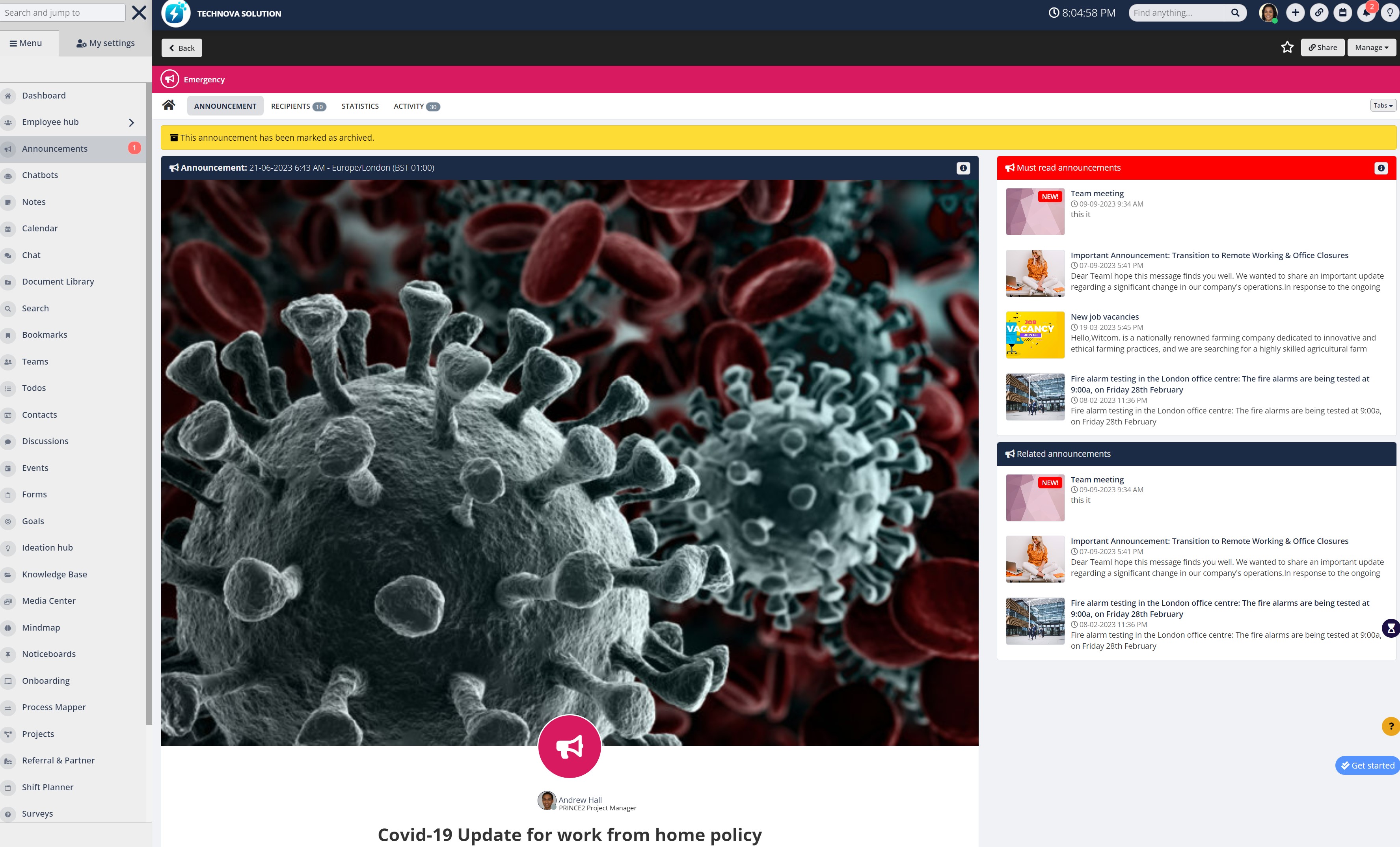 - Accessibility: Employees can access announcements from anywhere, making it ideal for remote or distributed teams.