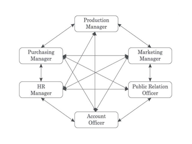 To understand this form of organizational communication, consider a company where the sales department head always ensures there is enough stock available for the team to accept orders. For this, he should keep interacting with the stores manager. The stores manager, in turn, maintains constant communication with the finance manager to make sure all the purchase orders are paid on time.