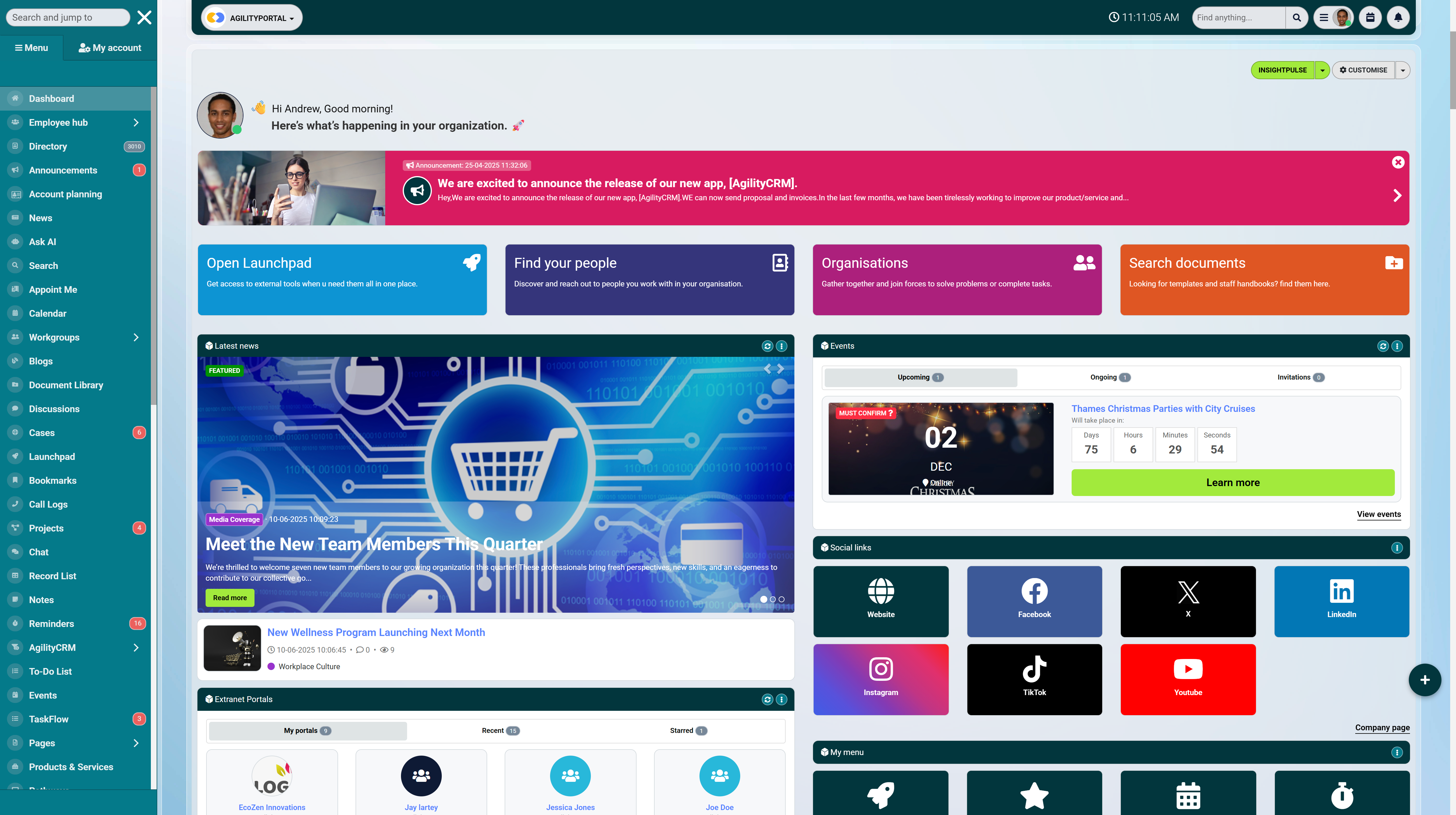 It provides a hub for company news, HR processes, project management, and knowledge sharing—all designed to improve efficiency, boost employee engagement, and strengthen workplace culture.
