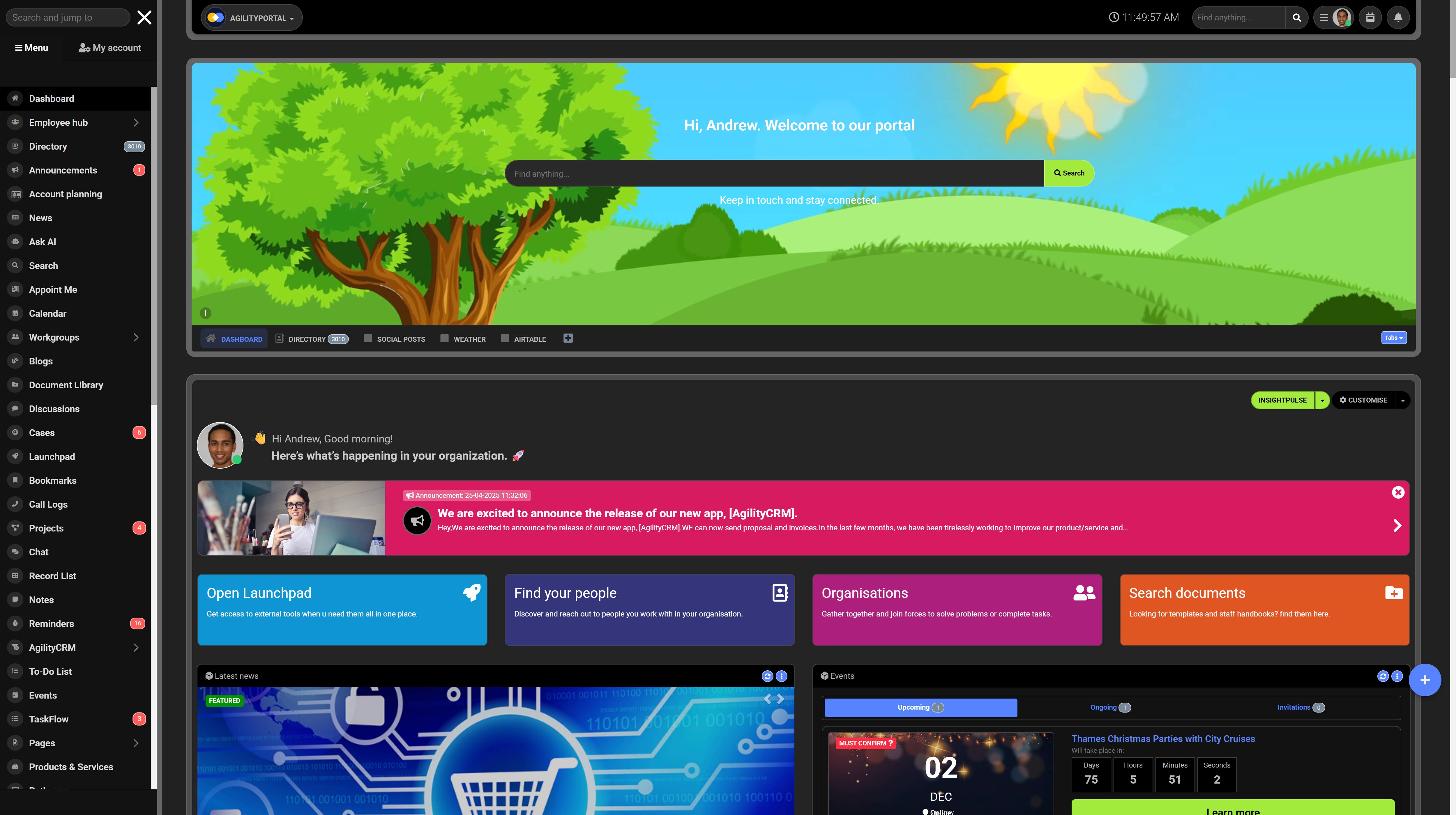 A centralized digital workplace hub connecting people, knowledge, and workflows.