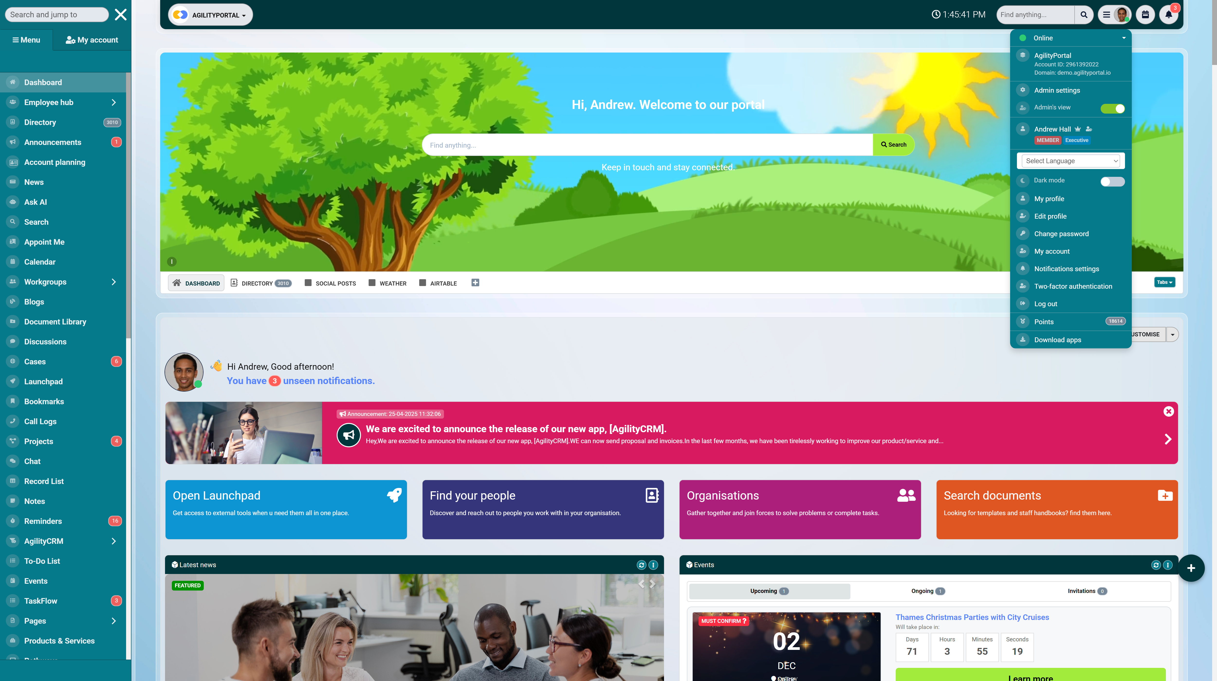 Unlike traditional intranets, AgilityPortal centralizes communication, project management, knowledge sharing, and employee engagement tools into one seamless SaaS application. This makes it especially valuable for organizations with hybrid or frontline workers, helping them stay connected, productive, and engaged no matter where they are.