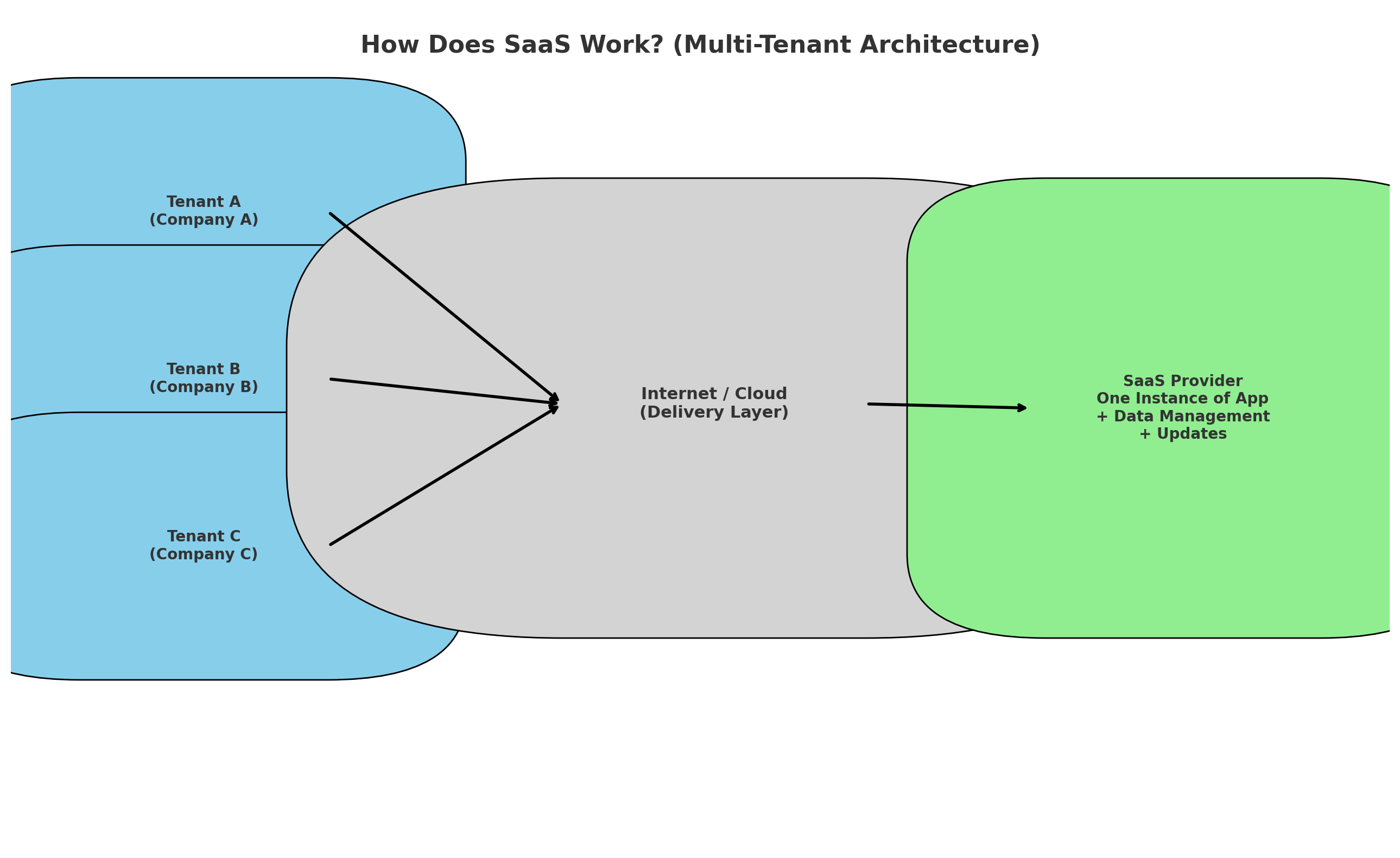 Most providers adopt a multi-tenant architecture, which means a single version of the software runs on the vendor's servers and is securely shared among multiple customers. This model allows businesses of all sizes to benefit from enterprise-level tools without the heavy upfront investment of on-premises software.